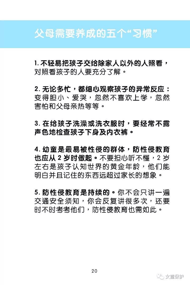 防性侵教育和交通安全、防水防火教育等安全教育一样重要,作为父母,你有极其重大的责任!